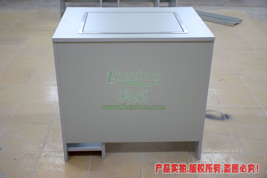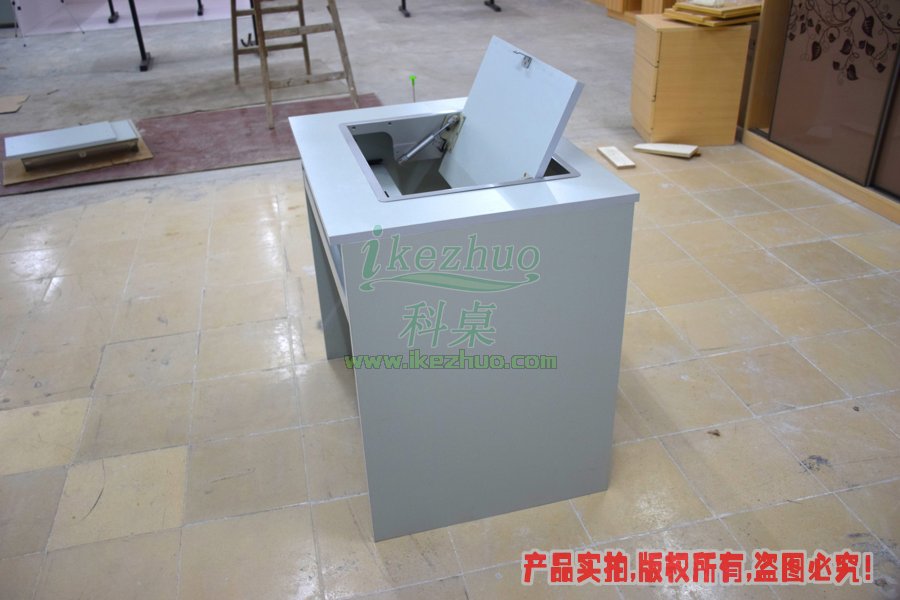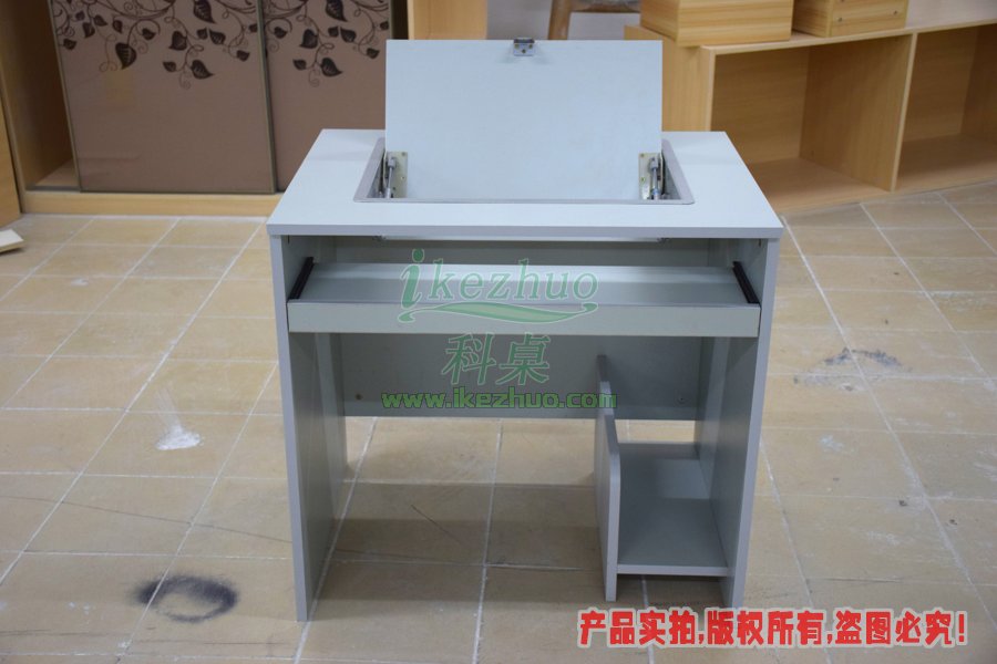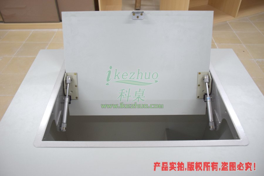 當需要使用顯示器時輕按前端桌面板隱藏在桌子內部的顯示器會自動從桌子下面升到桌面翻轉到合適角度。當不使用顯示器時,可手動按下顯示器翻蓋面板至桌面平整,顯示器自動鎖住隱藏在桌子內與桌面保持平整一致。起到防塵,防盜,保持桌面平整美觀。使用方便,手動控制,翻轉自如。