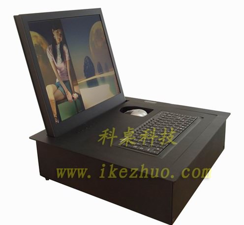 主要應用于各種高檔會議廳,交易廳,高級多媒體網絡系統,辦公家私場所,該翻轉器一般適用于19寸以下液晶顯示器,當打開翻轉器時液晶顯示屏會自動翻轉開,鍵盤也同時會自動升起與桌面齊平,當不使用時,顯示屏可隱藏于桌面內部,產品具有防盜、防塵保持桌面平整,美化桌面等功能