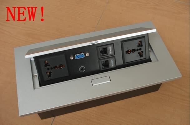 翻蓋多功能桌面插座是目前市場上較為新款、實用的、美觀的多功能桌面線盒,此款多功能桌面線盒適用于辦公會議桌、班臺、洽談桌面、個人辦公桌等。作為會議辦公桌面線盒,本系列的多功能桌面插座面板采用高質量鋁合金材質,面板表面采用陽極化精密度鋁拉絲處理,手感光滑細膩,外觀精美高檔,可以很容易的安裝嵌入到任何會議桌面任何位置不影響桌面整體效果。